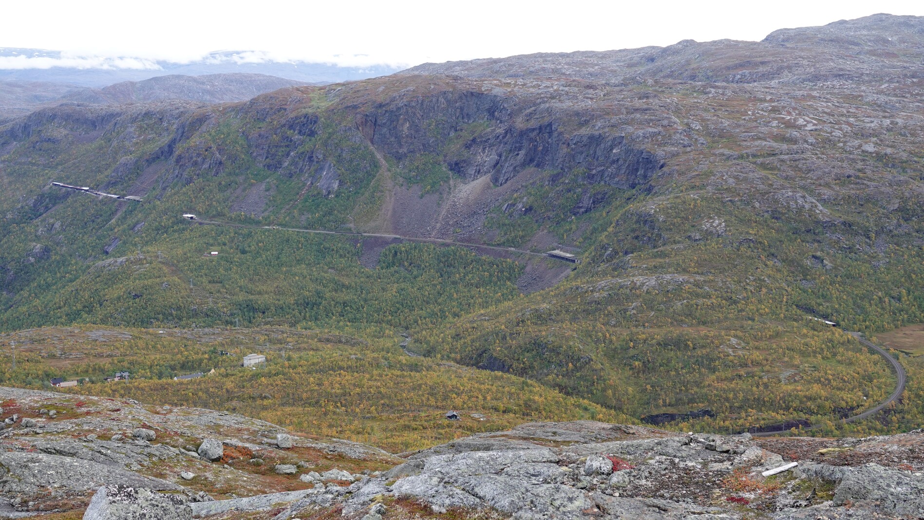 Last day. We walked with some beautiful wide views down to Katterat train station. Then took a left turn and went over a pass and a mountain lake to Riksgränsen.